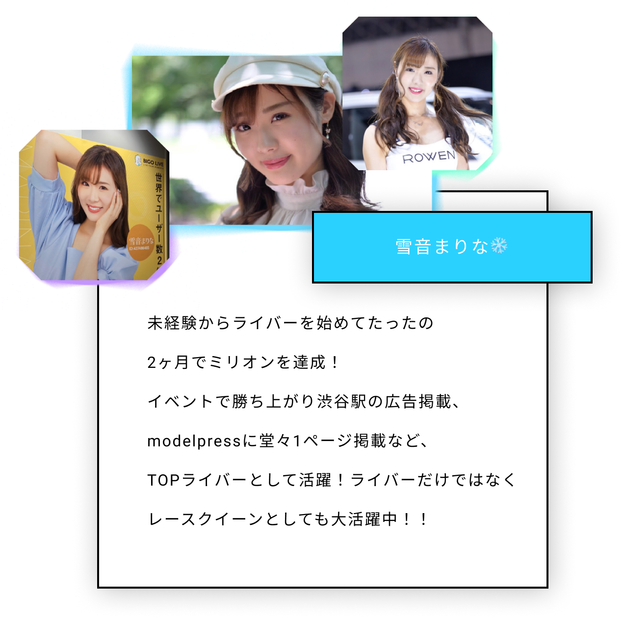 ライブ配信をしたことがない方でも、安心して活動を始められる万全のサポート体制をご用意しています。 また、完全オンラインサービスのため、どこに住んでいてもライバーとしての活動をサポートできます! 実際に配信で活躍しているライバーが担当者としてあなたをサポート、マネジメントするので、目に見える結果が出ます。
